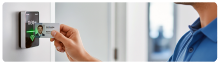 Die RFID-Kartentechnologie wird für die Zugangskontrolle eingesetzt, da sie eine eindeutige Identifizierung ermöglicht. Bei diesem System wird in der Nähe einer Tür ein Lesegerät angebracht, das die von der RFID-Karte übertragene ID erkennt. Die Tür wird nur geöffnet, wenn die RFID-Karte mit der Berechtigung im Zugangskontrollsystem übereinstimmt.