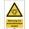 Vorgedruckte Informationen Beschriftung Warnung vor automatischem Anlauf