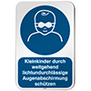 Beschreibung des Piktogramms Kleinkinder durch weitgehend lichtundurchlässige Augenabschirmung schützen