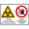Mehrsymbol-Schilder - Achtung Radioaktive Stoffe oder ionisierende Strahlen / Zutritt für Unbefugte verboten