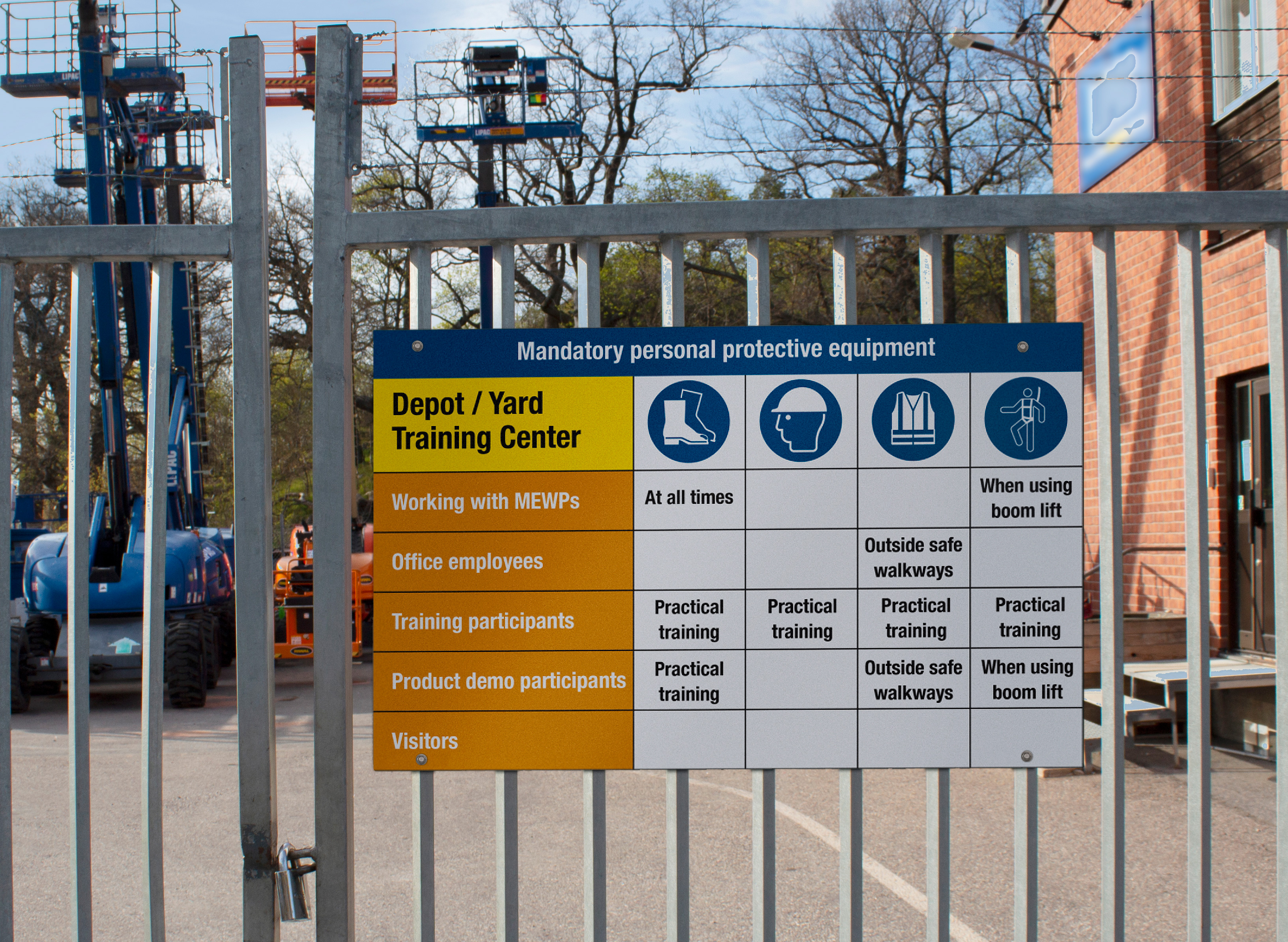 Machen Sie mithilfe von großen und in Vollfarbe bedruckten Schildern, die im Außenbereich mehr als 10 Jahre beständig sind, auf die wichtigsten Sicherheitsmaßnahmen aufmerksam.